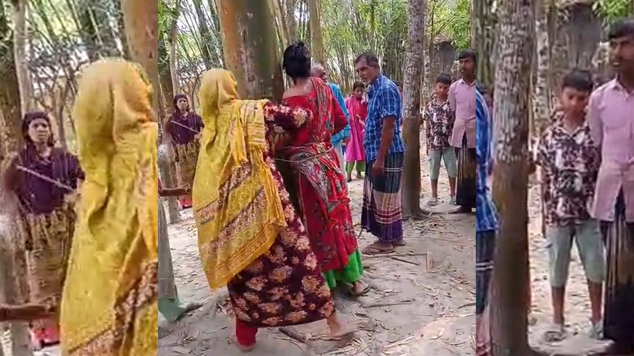 এরপর উপস্থিত লোকজনের সামনেই তিনি তার স্ত্রীকে একটি গাছের সঙ্গে বেঁধে লাঠি দিয়ে বেধড়ক মারধর করেন বলে অভিযোগ উঠেছে। এ সময় সেখানে উপস্থিত কেউ তাকে বাধা দেননি; বরং ঘটনাটি মোবাইল ফোনে ধারণ করে সামাজিক যোগাযোগ মাধ্যমে ছড়িয়ে দেওয়া হয়।