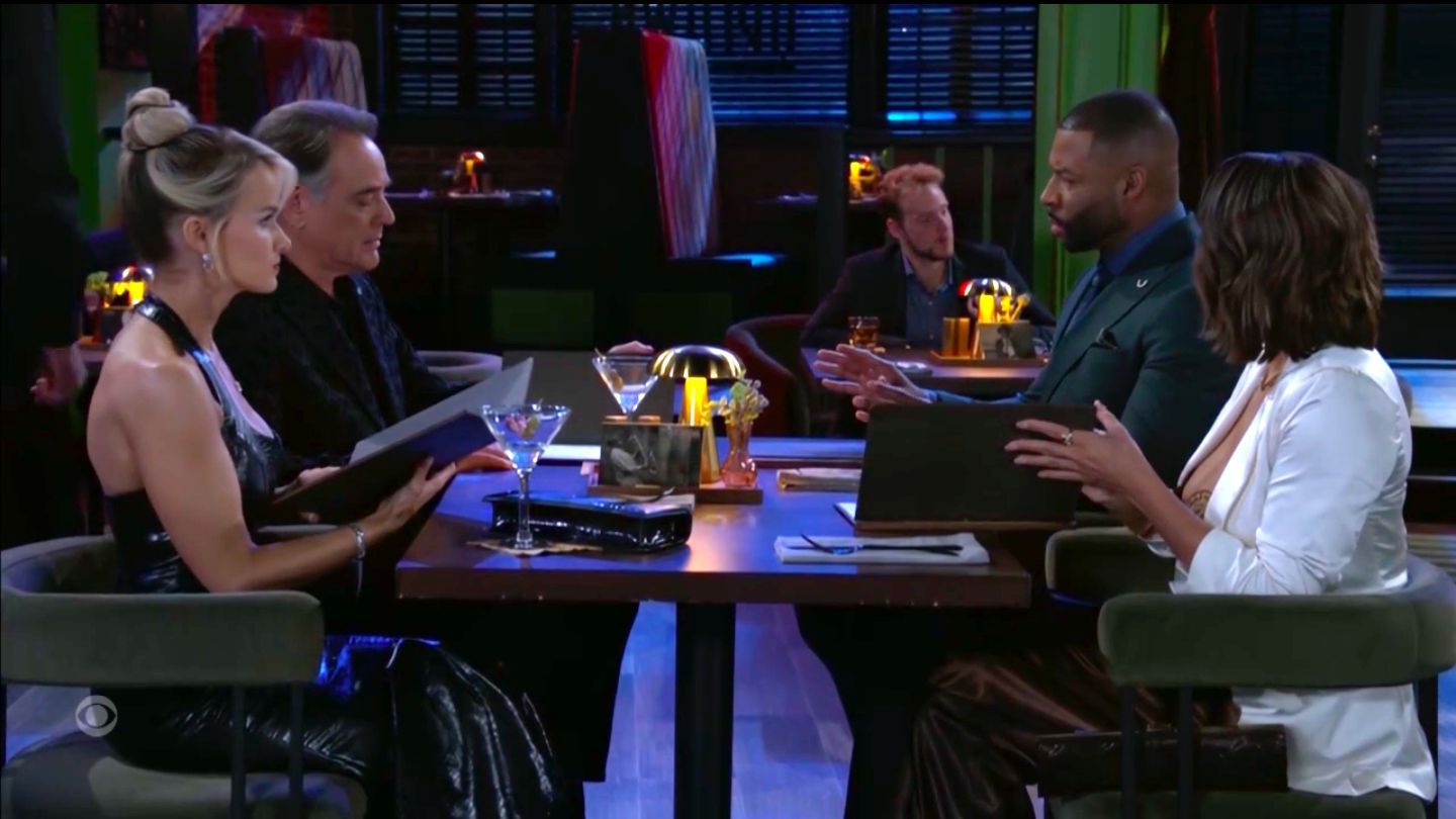 At Uptown, waiting for Nicole and Carlton to arrive, Vanessa was still shellshocked that Deanna had seen through her claim about not dating Joey until after Doug had died. Eventually, the two couples sat down together, but Joey immediately set Carlton on edge about how plastic surgeons were hacks who profited off other people’s addictions. Nicole empathized because Joey’s mother died during a procedure, though she called him out for making money from addicts himself. Vanessa closed her eyes as Joey verbally battled Carlton and Nicole, and when the waiter arrived, the foursome talked over each other in their need to order a drink.